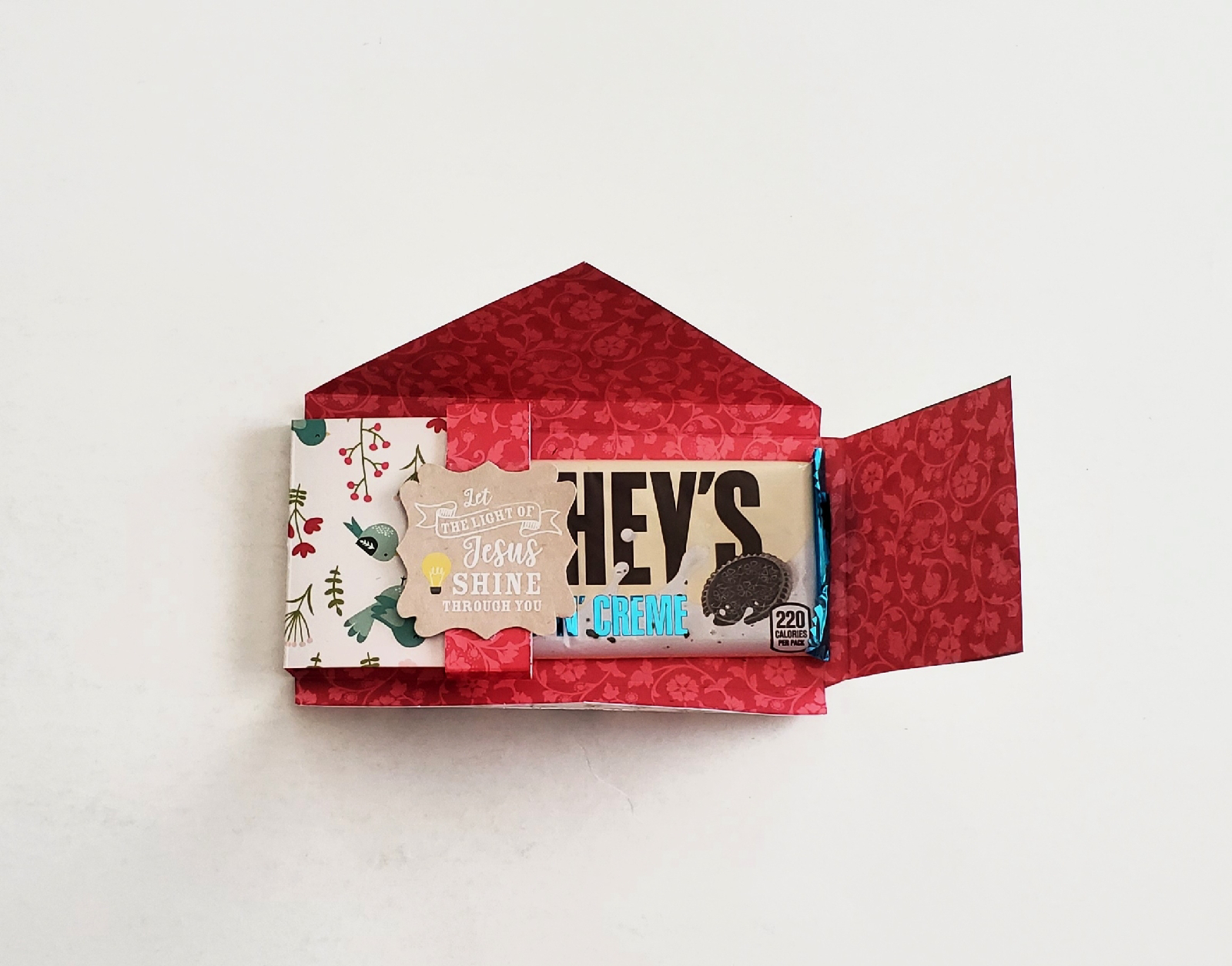 candy bar wrappers/treat holders are 3X6 inches and will hold a regular size Hershey's candy bar. They were made with paper and stickers by Echo Park Paper Company